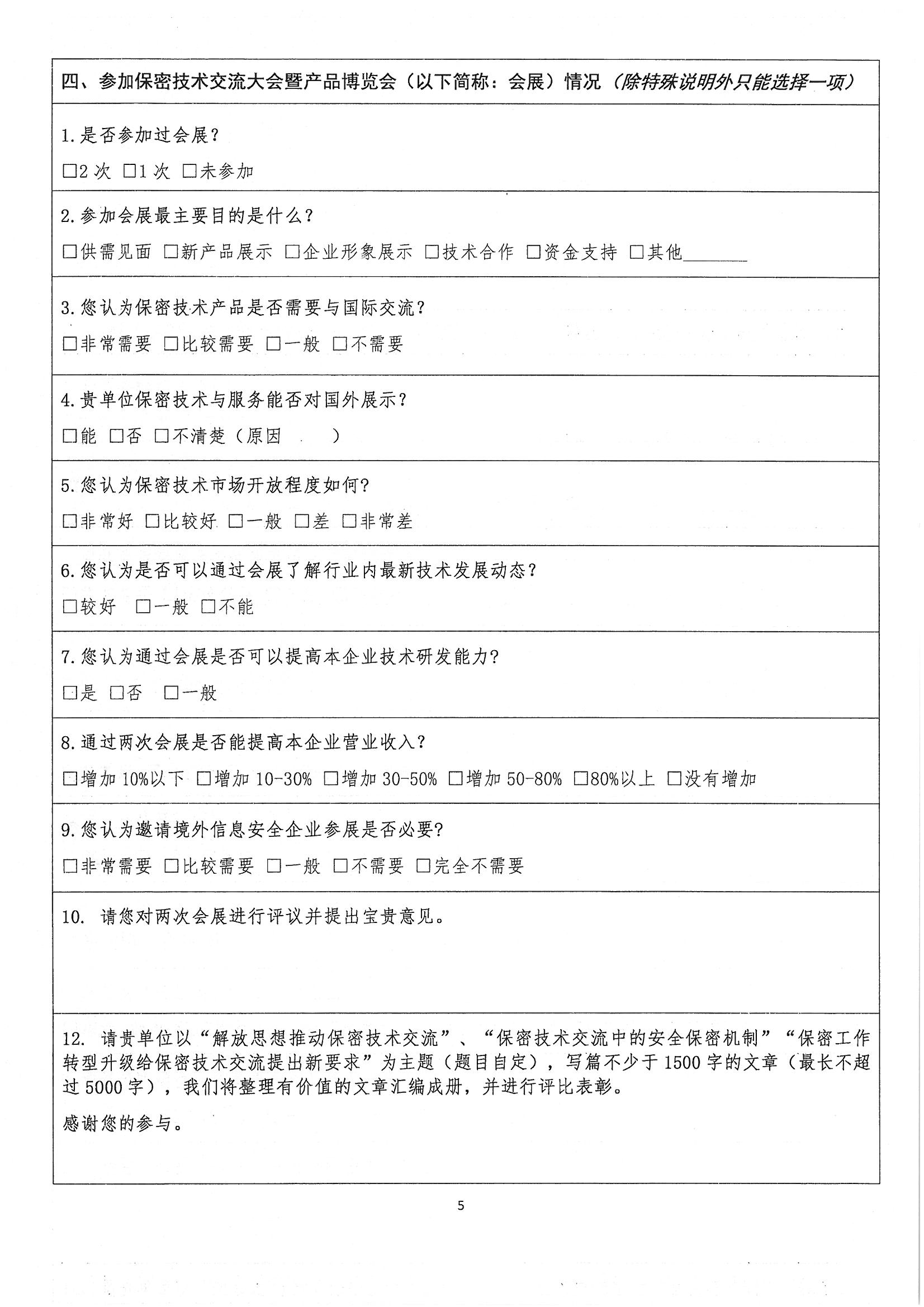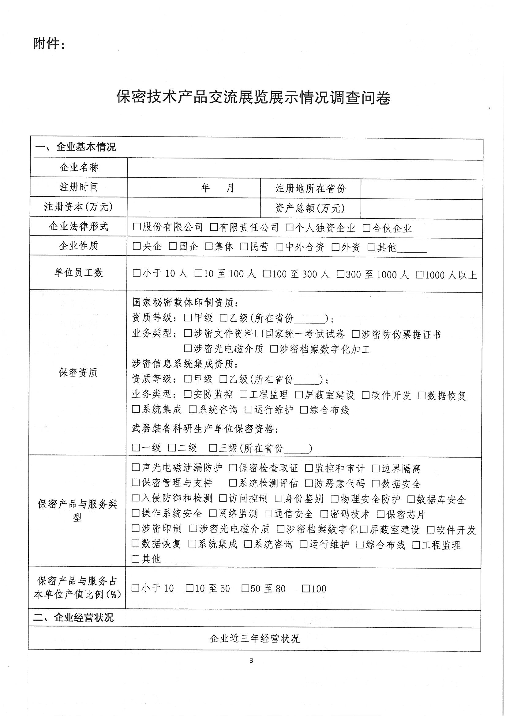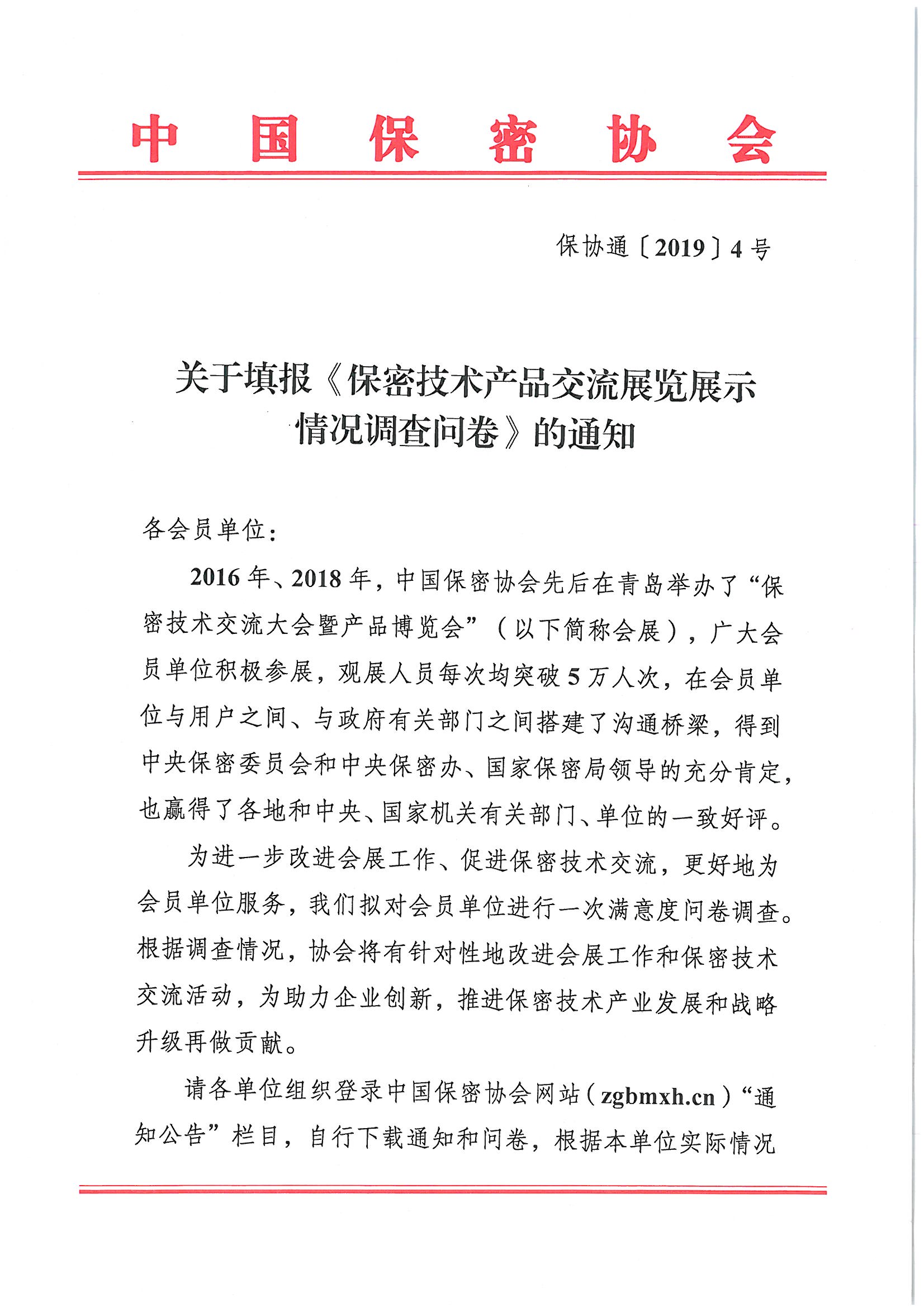 关于填报《保密技术产品交流展览展示情况调查问卷》的通知