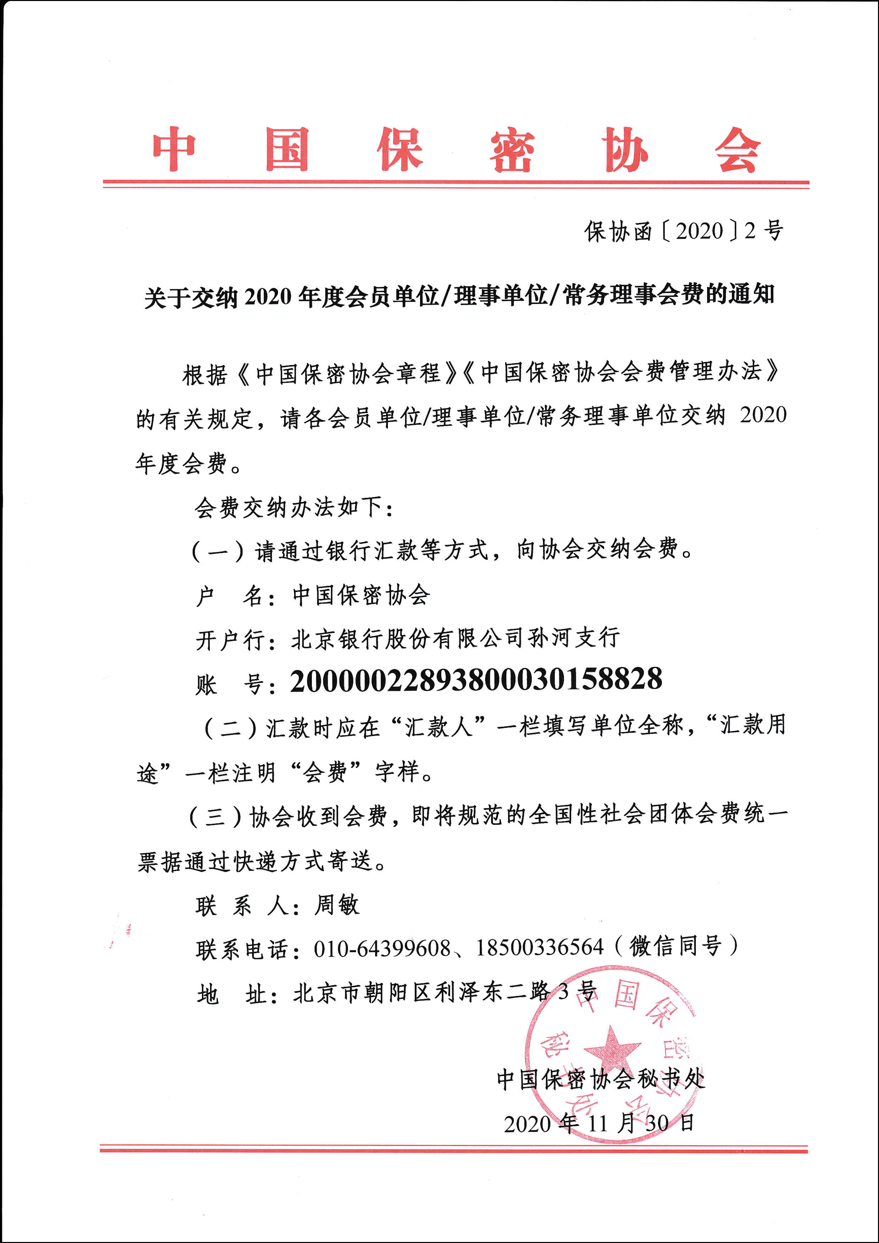 关于交纳2020年度会员单位/理事单位/常务理事会费的通知