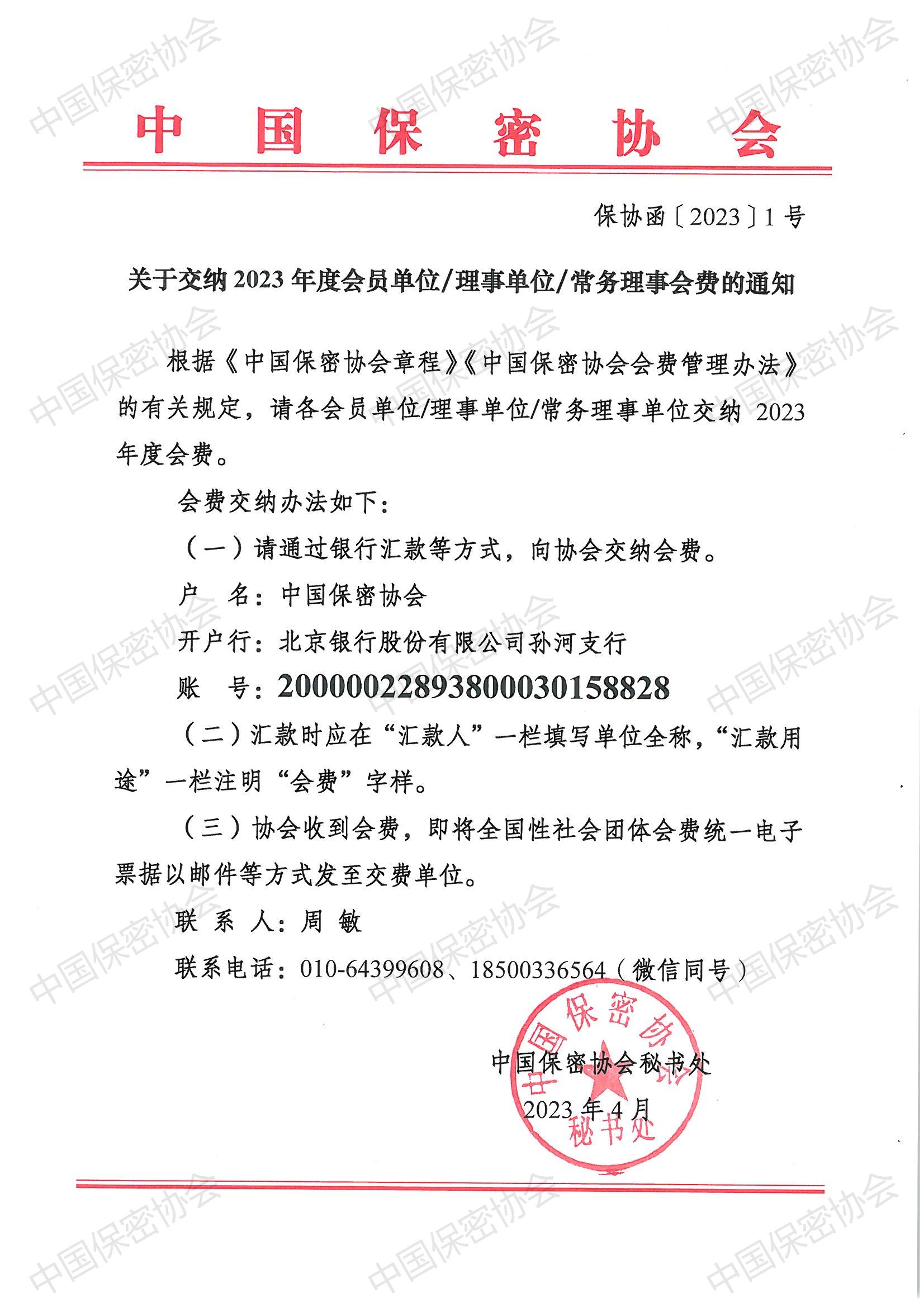 关于交纳2023年度会员单位/理事单位/常务理事会费的通知
